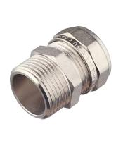 Прямой латунный никелированный фитинг для соединения металлополимерной трубы и компонента системы с резьбовым подключением. Резьба фитинга – наружная трубная по ГОСТу 6357