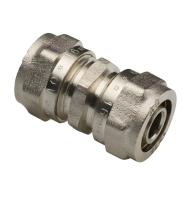 Прямой латунный никелированный фитинг для соединения металлополимерных труб. Имеются равнопроходные модели и модели с переходом на другой диаметр