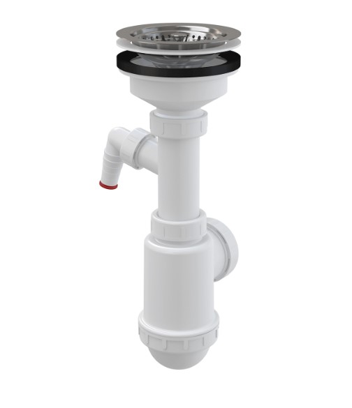 Сифон для мойки с больш. нерж. решеткой с отв. стир.маш. 3-1/2" ALCAPLAST A446Р