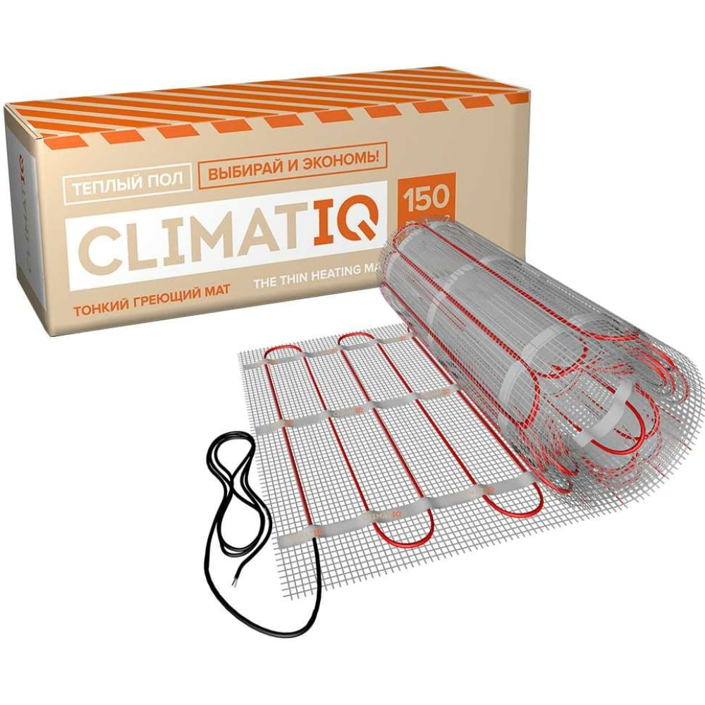 IQ Floor Mat-150-1.0 (150 Вт; 1.0 кв.м.) — электрический теплый пол на основе нагревательного мата. Представляет собой готовые секции резистивного греющего кабеля, закрепленного на полипропиленовой сетке. Толщина нагревательного мата — 3,6 мм, что позволяет установить его в клеевой раствор под плитку (до 10 мм), для любого керамического покрытия толщиной не более 10 мм, с минимальным подъемом высоты пола.