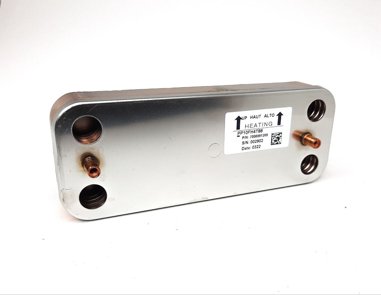 Теплообменник вторичный используется для приготовления горячей воды. В нем происходит теплопередача от теплоносителя первичного теплообменника. Он же теплообменник ГВС. Представляет собой множество соединенных между собой пластин. Пластины выполнены из нержавеющей стали. Благодаря большой площади теплообмена, такие теплообменники способны нагревать довольно большие объемы воды. Вторичный теплообменник ГВС в настенных двухконтурных котлах выполнен из нержавеющей стали и является пластинчатым.