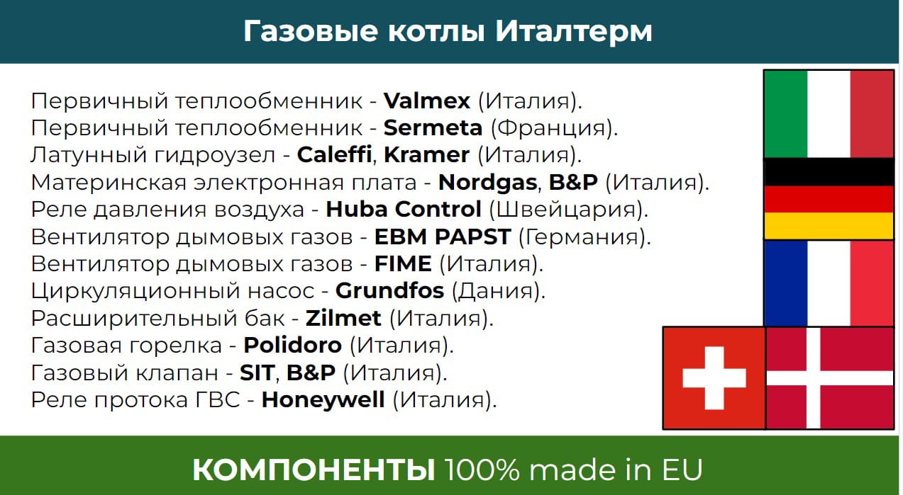 Добро пожаловать в мир высококачественного отопления с ассортиментом газовых котлов итальянского производства Italterm! Если вы ищете надежные и эффективные решения для отопления вашего дома или коммерческого помещения, то мы с радостью представляем вам нашу продукцию, которая сочетает в себе передовые технологии, элегантный дизайн и высокую энергоэффективность.