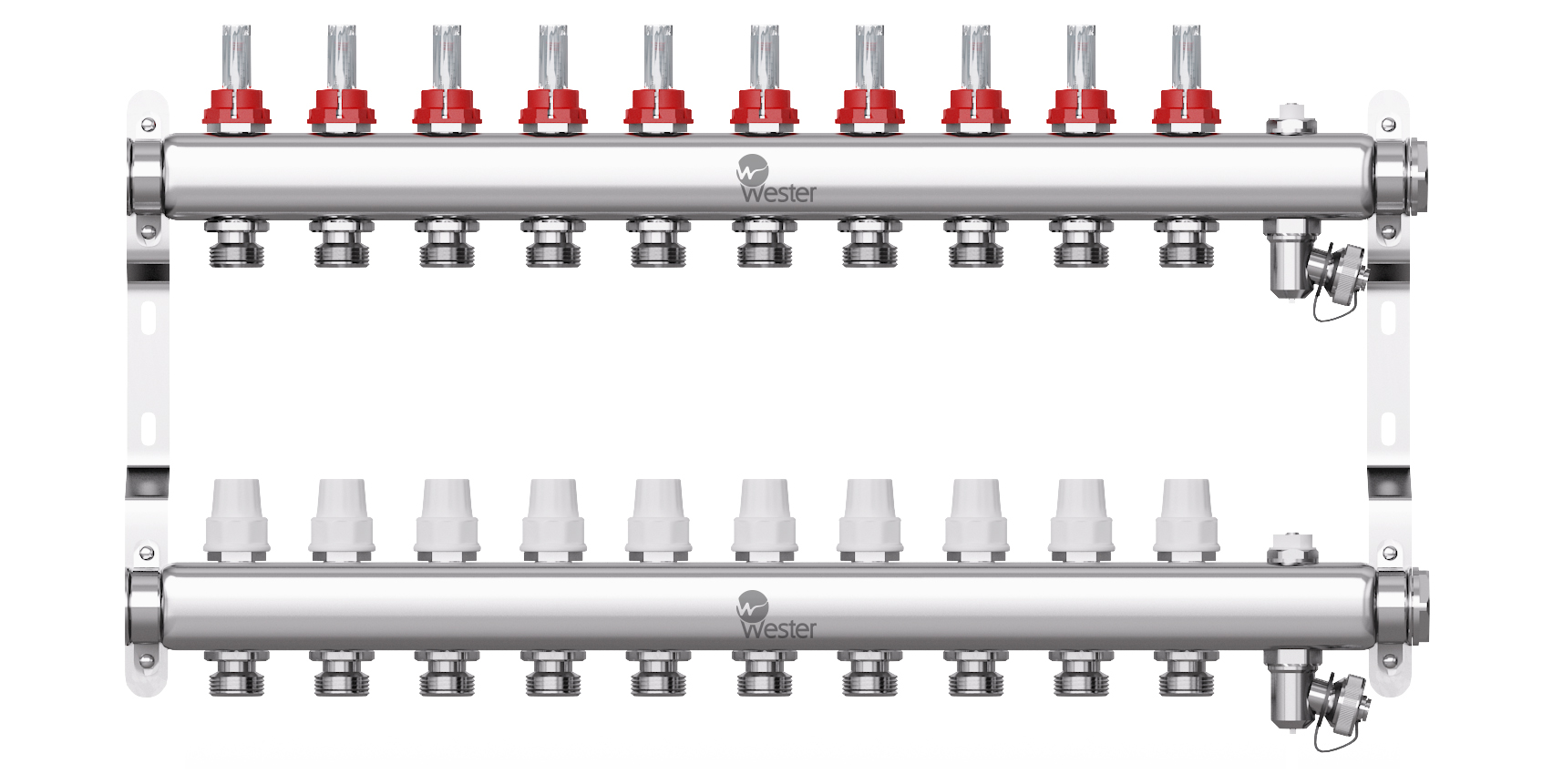 Коллектор нерж. 1"-3/4 в сборе на 10 выходов с расходомерами Wester W902.10