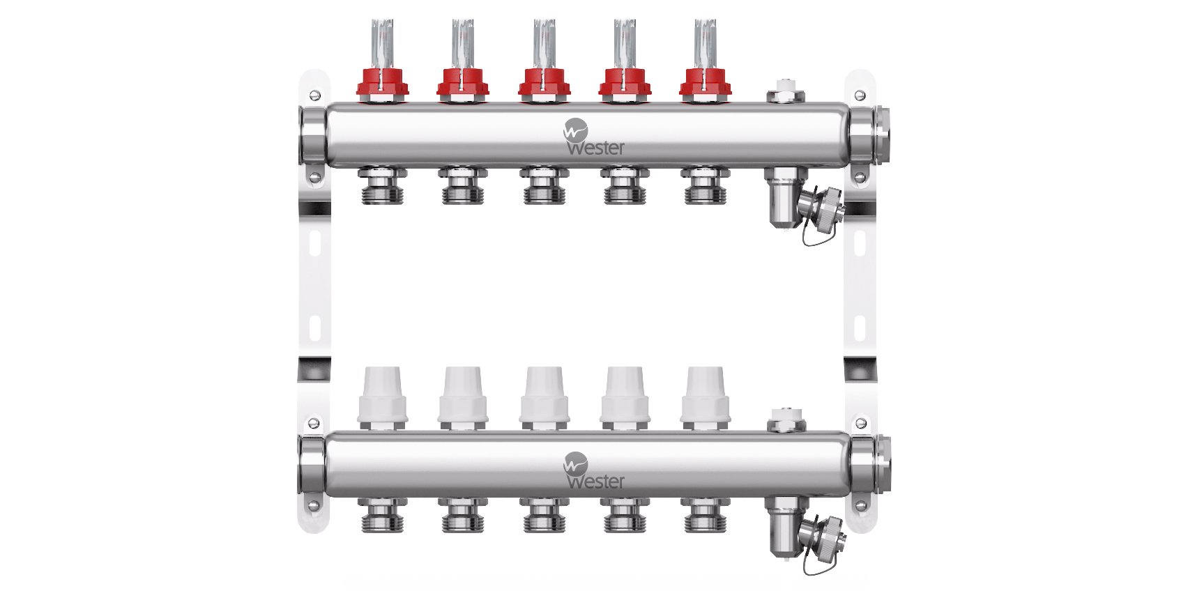 Коллектор нерж. 1"-3/4 в сборе на 5 выходов с расходомерами Wester W902.5