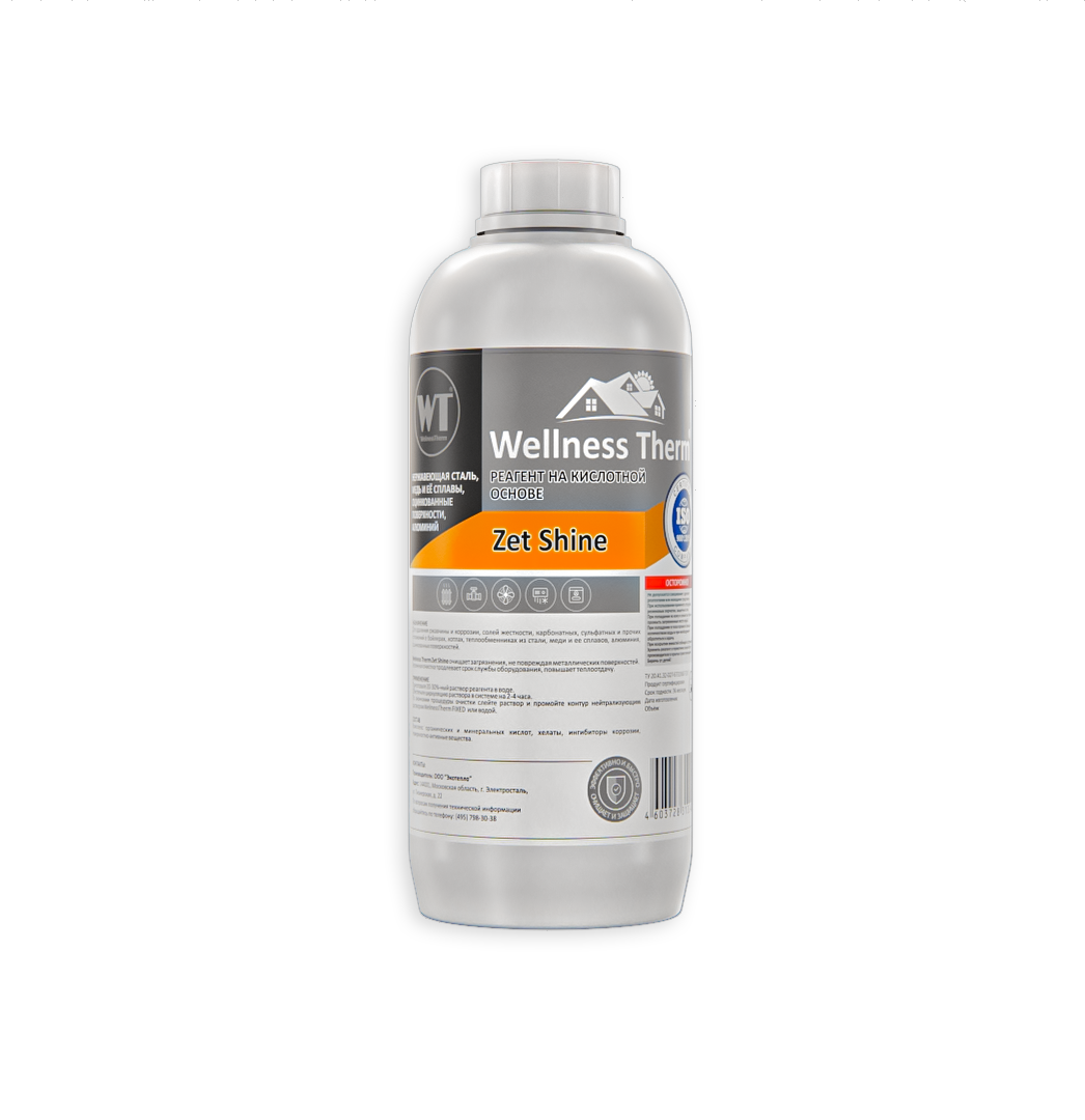 —Реагент для промывки от неорганич.отложений, трубопровод и теплообмен 1л WellnessTherm ZET SHINE