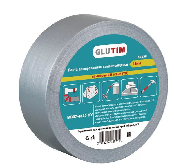 Лента арм. самокл. (48мм х 25м) серая GLUTIM MB07-4825GY